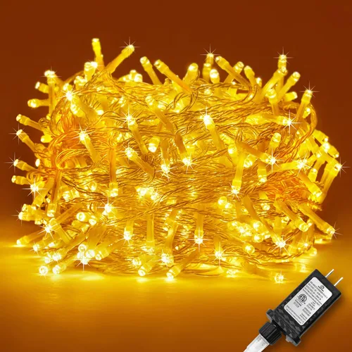 Selarlyt 100 luces LED de Navidad para interiores y exteriores, luces blancas cálidas para árbol de Navidad, cable transparente, 39 pies, tira de