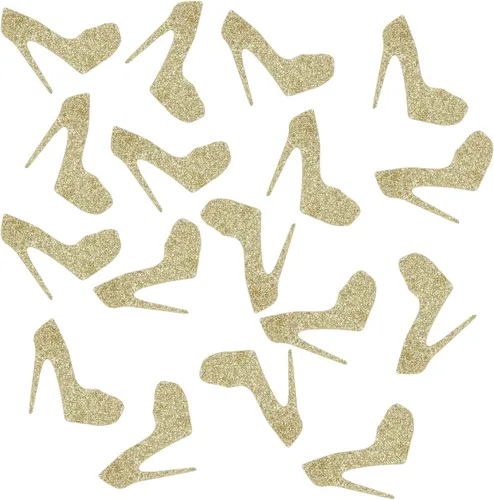 El paquete incluye 100 recortes de tacón alto. Estos recortes son perfectos para decorar baby shower, despedida de soltera, boda, etc.