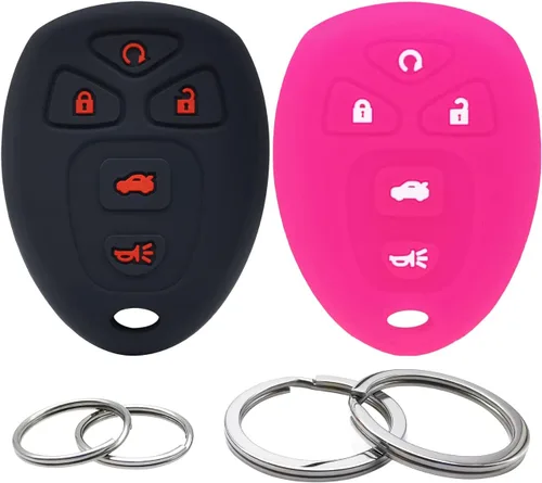 Nota: Para garantizar que obtienes la funda de llave correcta, comprueba la segunda imagen. Este artículo es una funda de silicona para tu llave remota, no la llave remota. Material de silicona ecológico, la textura es suave y sedosa. Será suave y cómodo en tu mano, saludable y seguro para las personas y fácil de limpiar. La señal de la llave no se ve afectada, puede proteger eficazmente tu llave remota de arañazos y polvo. Con estas fundas para llaves, encontrarás que tus llaveros siguen siendo muy nuevos después de mucho tiempo. Buena protección para tus costosas llaves remotas, te recomiendo encarecidamente que las adquieras desde el principio para evitar que tu llavero se deteriore. Contenido del paquete: 2 fundas para llaves + 4 llaveros (Nota: El llavero está dentro de la funda de silicona.)