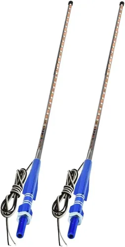 Aplicaciones: Luces LED de látigo de 3 pies utilizadas para ATV, 4X4, UTV, Can Am Maverick X3, Polaris Rzr XP 1000 900, rieles de arena/Buggies, SxS, vehículos todoterreno de dunas, pistas de arena, motocicletas, motos de nieve, camiones, karts, carritos de golf, etc. Característica: Ángulo de luz: 270° Modo de luz: estroboscópico RGB. Control de luz: automático Tamaño: 35 pulgadas = 35.4 in. Voltaje de trabajo: 12V DC LED SMD: 3528 SMD. Cantidad de LED: 59 piezas/luz Instalación: flexible/fijo dentro del rango de ángulo de 60° Resistente al agua: IP68. El paquete incluye: Luces de látigo de 2 x 3 pies 2 juegos de soporte. Nota: sin bandera estadounidense