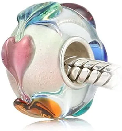 ¿Para qué sirve Abalorios de cristal de Murano auténticos dijes de plata de ley 925 con núcleo de flor roja, corazón rosa, cuentas de vidrio blancas y amarillas?