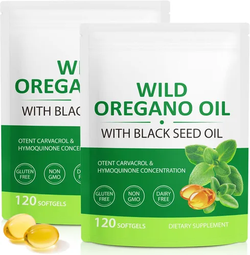 Cápsulas de aceite de orégano orgánico: Cada porción de aceite de cápsulas de orégano contiene aceite de orégano con aceite de semilla negra, promueve la digestión, promueve el equilibrio corporal y la salud general Extracto de aceite de orégano 2 en 1: Cada porción de aceite de cápsulas de orégano contiene 6,000 mg de aceite. El aceite de orégano con aceite de semilla negra se combina en uno y funcionan juntos, lo que ofrece un apoyo esencial para tu cuerpo Apoyo inmunológico y digestivo: el aceite de orégano y el aceite de semilla negra trabajan sinérgicamente para apoyar un sistema inmunológico saludable y promover una función digestiva óptima Cápsulas blandas fáciles de tragar: cada bolsa de aceite de orégano contiene 120 cápsulas blandas de aceite para un fácil consumo y máxima biodisponibilidad Natural y puro: Este aceite de cápsulas blandas de orégano es natural, puro, a base de plantas, potente y libre de OMG, soja, lácteos y gluten, asegurando la pureza y un suplemento natural y eficaz