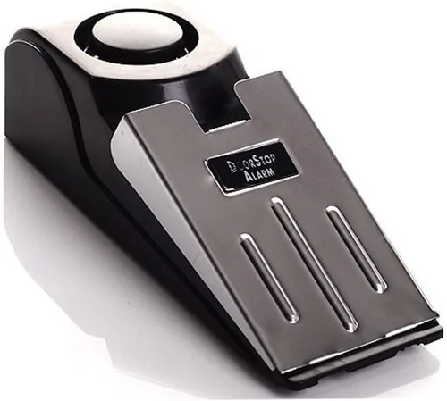 Este es un tope de puerta mejorado que otros. Es más duradero que otros con mejor calidad. 3 niveles de sensibilidad: bajo, medio, alto, con un interruptor de sensibilidad ajustable en el lateral. Muy fuerte y estridente que definitivamente asustaría a alguien con una alarma de 120 db. Peso: 4.52 oz Se puede utilizar como tope de puerta común cuando baje el interruptor de encendido/apagado, mantenga la puerta en posición abierta. No requiere instalación. Requiere una batería de 9 voltios (no incluida). Manera portátil y fácil de añadir tranquilidad cuando viajas o trabajas solo.
