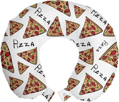 Ambesonne Almohada de viaje para pizza, con patrón dibujado a mano, menú de pizzería, comida rápida, deliciosa comida gourmet, accesorio de viaje