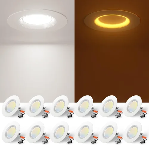 Amico Paquete de 12 luces LED empotrables 5CCT de 4 pulgadas con luz nocturna, 8 W = 60 W, 700 lm luces de lata con borde deflector, regulable,