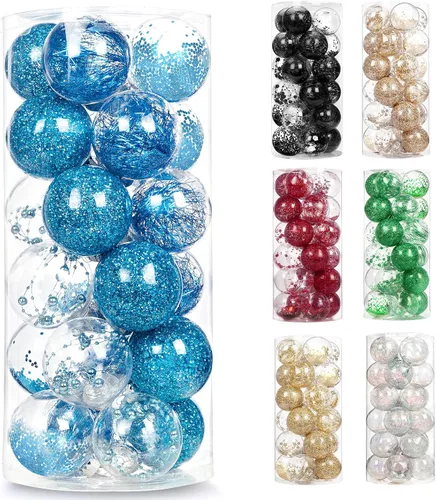 AMS Juego de adornos de bolas de Navidad de plástico transparente inastillables de 2.36 pulgadas 24 unidades, juego de bolas decorativas de Navidad