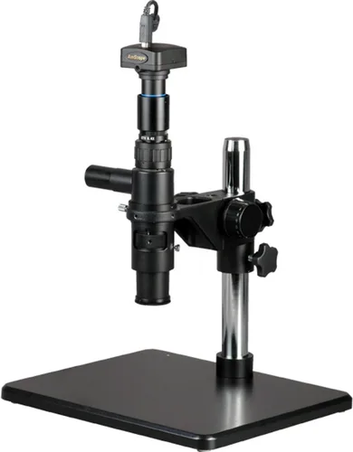 El microscopio de inspección monocular digital con montura C de 0.4x se utiliza para medir objetos en aplicaciones de campo, laboratorio y control de calidad, y una cámara de 5MP con lente de reducción y salida USB 2.0 para capturar o mostrar imágenes en una computadora o proyector Objetivo de zoom de 0.7x-5.0x con rango de zoom 11x-80x La luz coaxial integrada de tungsteno proporciona una iluminación sin sombras El soporte de mesa estilo pilar tiene una placa negra para proporcionar contraste con especímenes de colores claros