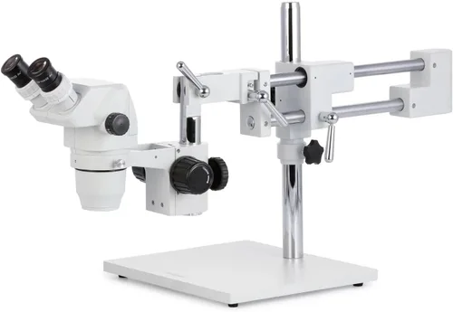 El microscopio estéreo profesional con soporte de pluma tiene una larga distancia de trabajo para permitir a los usuarios realizar trabajos o manipular artículos grandes, incluyendo placas de circuito y aparatos dentales Cabezal de visión binocular con par de oculares de campo ancho extremo 10x, distancia interpupilar ajustable, inclinación vertical fija de 45 grados para reducir la tensión ocular y el cuello, y capacidad de rotación de 360 grados para permitir compartir El objetivo de zoom de 0.67x-4.5x proporciona un aumento continuo del zoom y una distancia focal más larga para inspeccionar muestras a gran escala La iluminación ambiental ilumina la muestra, eliminando la necesidad de energía o baterías El soporte de brazo doble tiene brazos de 20 pulgadas y pilar de 17 pulgadas para permitir a los usuarios colocar la cabeza del microscopio en tres ejes (X, Y y Z)