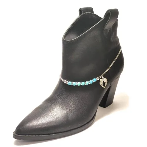 • Turquoise Stones - genuine semi-precious reconstituted 6mm blue turquoise gemstones Boot Flex and Bend Stress - Wear your boot jewelry with a drape from the ankle, and not a snug or tight fit, to prevent breakage. You should be able to easily fit your finger between your jewelry and heel of the boot without it slipping off Style Tips - enjoy with lug sole, sheepskin, western, heeled and casual boots Purchase Includes - one gift boxed boot chain suitable for all age fashionistas! Shop With Confidence - original design boot jewelry, Handmade in the USA