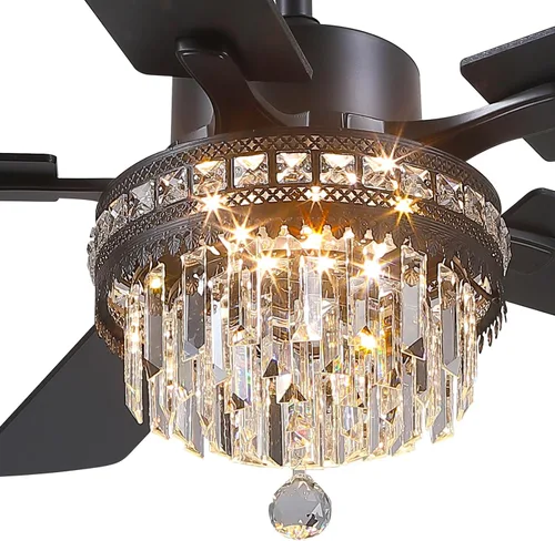 Asyko Ventilador de Techo de Cristal Fandelier con Luces - Ventiladores de Exterior de 46" con Control Remoto y Ventiladores de Techo de Cristal con hierro