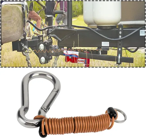 【Garantía de calidad】: nuestro alambre de seguridad para remolque está trenzado de acero inoxidable, además de material de PVC de alta calidad envuelto con goma. El cable trenzado de alambre de acero de alta resistencia es resistente a la corrosión, duradero, resistente a los arañazos, al óxido y a la abrasión, y tiene una vida útil más larga que los cables de remolque de línea recta ordinarios. 【Fácil de operar】: el accesorio de cable de remolque incluye resorte, conecta el anillo dividido con el pasador y extiende el cable, y se conecta a presión al remolque. Aseguran un ajuste preciso y se pueden instalar sin modificaciones. Fije el anillo dividido al pasador, luego estire el cable y conecte el mosquetón a su remolque. 【Función de protección】: nuestro cable de remolque de resorte es una cuerda de seguridad diseñada profesionalmente que conecta el sistema de frenado de tu remolque a la parte posterior de tu remolque, minimizando la posibilidad de accidentes mientras acampas en una emergencia de remolque de caravana. Para su seguridad personal y requisitos estatales, este cable de remolque es una herramienta imprescindible para los propietarios de remolques. Diseño en espiral: hemos diseñado el cable de seguridad del remolque para que sea flexible y enrollado. Ayuda a prevenir el remolque y los enredos, mantiene el cable fuera de la carretera, permite aflojar en los giros y es libre de estirarse y extenderse hasta 4.92 pies. Ayuda a garantizar que su vehículo de remolque no se salga de control cuando se desconecta. 【Ámbito de uso】: el cable de freno en espiral es adecuado para remolques de RV, cámper, barcos, etc. Es adecuado para casi todos los sistemas de rotura de remolque tipo pasador. El cable de separación hace que sea fácil enganchar el cable al remolque. El propósito del cable de ruptura de emergencia del remolque es minimizar la posibilidad de accidentes.