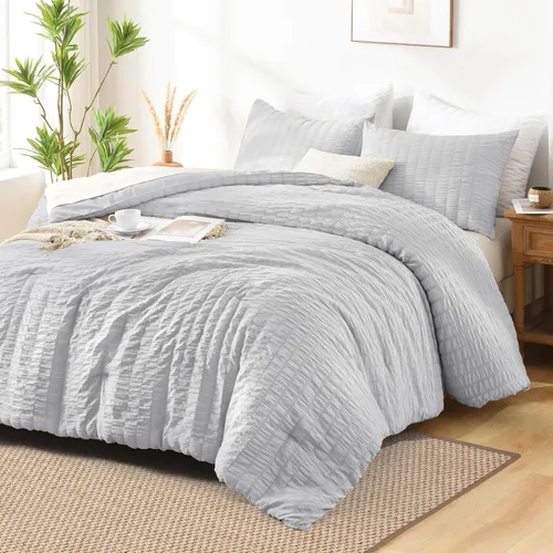 Diseño elegante de mil rayas: ¿Estás cansado de juegos de edredón lisos y sin ningún diseño? Esta delicada y hermosa textura de seersucker es simple y elegante, y te enamorarás del patrón a primera vista. Cómodo y suave: el juego de edredón gris claro de AveLom está hecho de 100% microfibra lavada. Material extremadamente suave con relleno de 300 g/m² que te mantiene caliente y cómodo durante todas las estaciones. 40% más duradero y transpirable que los materiales ordinarios. Ligero y esponjoso: El edredón AveLom tamaño matrimonial no ejerce presión sobre tu cuerpo. Te derretirás totalmente en ella y sentirás como si durmieras en una nube. El material de tela bien acabado proporciona un tacto suave y cómodo. Fácil cuidado y apto para mascotas: lavable a máquina en ciclo suave con agua fría por separado. Secar al aire o en secadora a baja temperatura. No usar blanqueador. Nuestro juego de edredón de cama ligero no atrae el pelo de tu mascota. Sujetación de hasta las patas de perro/gato y cepillos de pelo de perro/gato que se quitan fácilmente. Tamaño y medidas: el juego de edredón de seersucker AveLom tamaño individual incluye 1 edredón (68 x 90 pulgadas) y 1 funda de almohada (20 x 26 pulgadas). El juego de edredón se puede utilizar como relleno de edredón o como edredón independiente.