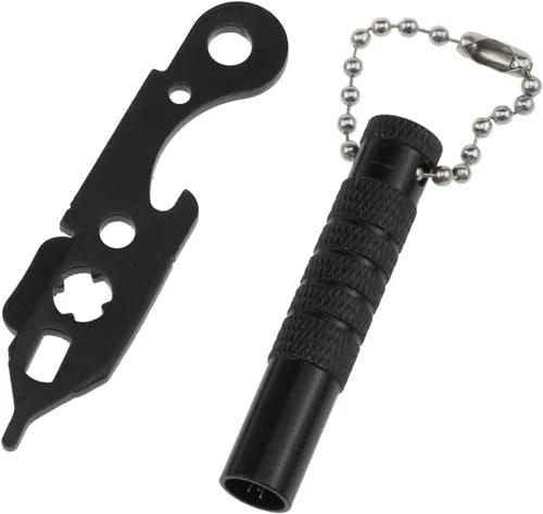 Especificaciones del producto: Herramientas de llave de dardos: Material: acero inoxidable Tamaño: 60x13mm/2.36x0.51" Color: negro Usos: Carga y descarga de varilla de aluminio, carga y descarga de cabezal de dardos en aerosol, destornillador de cerveza Herramienta de extracción de varillas de dardos: Material: hierro de metal. Tamaño: 46x8mm/1.81x0.31" Color: negro Usos: Retire la barra de dardos dañada Recibirás: 1 llave de dardos + herramienta de extracción de barra de rotura de dardos