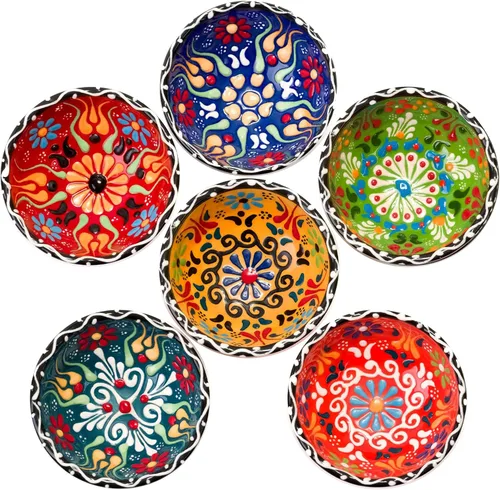 Diseño único y alta calidad: sus colores vivos y patrones se ven increíbles. Cada cuenco está especialmente hecho a mano y único. Nuestros cuencos pequeños están diseñados para ser utilizados de forma segura en microondas, horno, congelador y lavavajillas. Fabricado en Turquía con técnicas especiales para durar mucho tiempo sin desgastarse. Debido a que están pintados a mano, puede haber diferencias muy leves entre los cuencos. Esto demuestra la autenticidad y la singularidad del producto Versátil: Los mini cuencos son una excelente opción para servir todo tipo de salsas. Salsa de soja, salsa, guacamole, ketchup y más. Además, es ideal para servir queso, aceitunas, mermelada, miel, nueces, frutas secas, condimentos, especias y aperitivos. Adecuado para ser utilizado como cuencos de mise en place, preparación para cocinar, guarnición y tabla de charcutería. Además, se pueden utilizar para fines decorativos, soporte para joyas y bandeja para baratijas Tamaño y capacidad: Tazas pequeñas; 3.2'' de ancho x 3.2'' de largo x 1.5'' de alto - 90 ml Regalo perfecto: excelente regalo para cualquier persona y cualquier edad Empaque: Meticulosamente empaquetado para garantizar una llegada segura (todos los pedidos se enviarán en una caja resistente a los golpes)