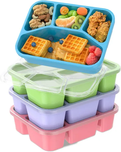 4 compartimentos: los recipientes de preparación de alimentos son adecuados tanto para niños como para adultos, ya que pueden frenar su hambre. Los recipientes para preparación de comidas cuentan con 4 compartimentos que se dividen perfectamente para crear una comida bien equilibrada y dividir varios alimentos como frutas, yogur, dulces, salsa, sándwiches, ensaladas, verduras y otros deliciosos aperitivos. Material reutilizable y de grado alimenticio: la lonchera bento para adultos está creada con un material fuerte y duradero que es resistente a las caídas, por lo que es un recipiente de alimentos ideal. Nuestros recipientes para lonchera están fabricados con materiales de alta calidad de grado alimenticio (material PP de 5 grados), lo que garantiza que no contienen BPA, inodoros y altamente resistentes a la suciedad. Además, el recipiente de alimentos es reutilizable y fácil de limpiar. Tapa fácil de abrir: el mango de oreja de gato en la tapa de los recipientes de almuerzo para niños hace que sea muy fácil poner y quitar la tapa de la lonchera, e incluso los niños pueden hacerlo con facilidad. 【Tapa transparente】Gracias al diseño de tapa transparente, puedes ver el contenido del recipiente con facilidad y seleccionar el deseado de un grupo de recipientes similares. Aplicación multiescena: los recipientes de aperitivos se pueden apilar en el refrigerador y armarios, lo que los hace ahorrar espacio, y el peso ligero de los recipientes de preparación de comidas los hace ideales para adultos, niños y comidas sobre la marcha.