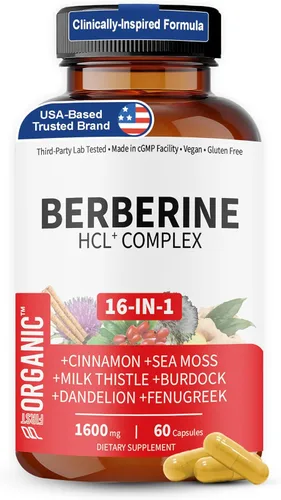 ¿Para qué sirve Berberine HCL+ Complex 1600mg - 60 cápsulas - Apoya la salud cardiovascular, hepática e intestinal con canela de Ceilán, cardo mariano y mezcla?