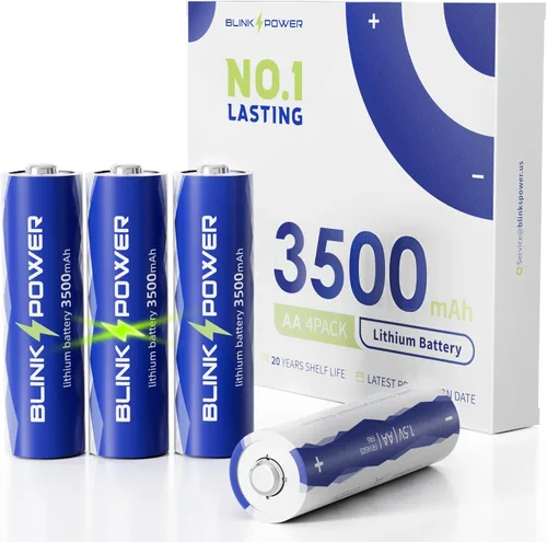 3500mAh No.1 De larga duración - Paquete de 4 baterías de litio AA de 3500mAh, puedes sentir el poder abrumador, especialmente en dispositivos que consumen más energía. Tranquilidad en entornos extremos: nuestras baterías son resistentes al frío y al calor, lo que proporciona una potencia confiable y duradera de -40 °F a 140 °F, ya sea que estés en un viaje al aire libre, en casa o en el trabajo. Sin fugas: nos tomamos muy en serio la seguridad de tus dispositivos favoritos, la batería tiene un diseño profesional de triple seguridad a prueba de fugas para eliminar fugas, sin necesidad de preocuparse por problemas de seguridad. Vida útil de 20 años: las baterías Blinkspower siempre son frescas y tienen una vida útil de hasta 20 años, lo que las convierte en una opción perfecta para almacenamiento a largo plazo y artículos de preparación para huracanes. Ampliamente compatible: está diseñado específicamente para dispositivos de alto consumo de energía, pero también es ideal para una amplia gama de dispositivos inteligentes domésticos de uso regular, incluyendo cámaras Blink, cámaras de rastro al aire libre, alarmas de humo, controles remotos y más. Nota: 1. La duración de la batería variará según la configuración del dispositivo, el uso y los factores ambientales. Si hay algún problema anormal con la batería después de recibirlas, no dudes en ponerte en contacto con nuestro servicio de post venta. 2. Estas son baterías de litio desechables, no recargues estas baterías.