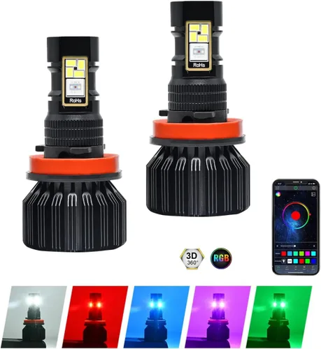 Bombilla de luz antiniebla RGB, H11/H8/H9 multicolor Bluetooth APP Control de alto brillo SMD 3000LM conducción DRL bombillas de luces antiniebla
