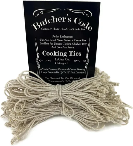 Pregunta sugerida sobre Butchers Code Rotisserie - 50 lazos elásticos de algodón resistentes al calor Cordel de cerrojo para pollo, pavo, carne, asado, parrilla, uso ¿Este producto sí me sirve para lo que necesito?