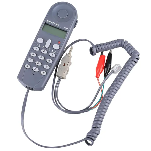 probador de cable telefónico con botones de encendido/apagado y de suspensión.FSK/DTMF identificador de llamadas de sistema dual. prueba de cable de cable telefónico FSK/DTMF identificador de llamadas de sistema dual. Fácil para el liniero comprobar la falla de su línea telefónica. Viene con tres tipos de enchufe de línea, se conecta fácilmente a la línea telefónica. Este conjunto ofrece botones de remarcación de último número, encendido/apagado y colgante, para que el liniero pueda verificar la falla de su línea telefónica.