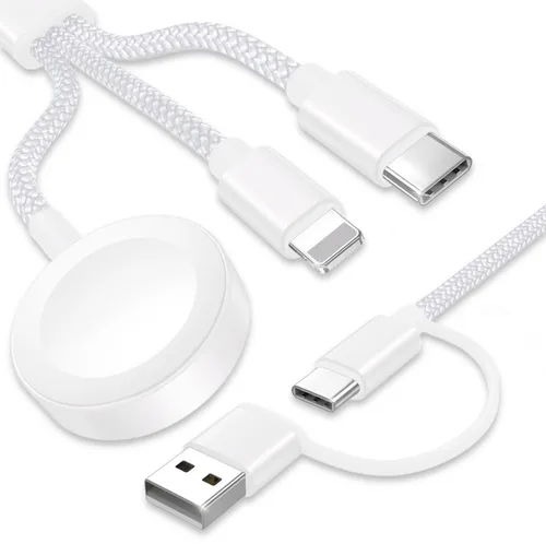 • Nuestro cargador múltiple para dispositivos Apple está diseñado para Apple Watch Ultra 2/Ultra/SE 2/SE/10/9/8/7/6/5/4/3/2/1, iPhone 16/16 Pro/16 Pro Max/16 Plus, iPhone 15/15 Pro/15 Pro Max/15 Pro/15 Pro Max/15 Más/42/44 3/12/11, iPad Pro/Air/mini, AirPods Pro 2/Pro/Max/4/3/2/1 【Cargador USB C/A a iWatch, compatible con el puerto Lightning y el cable USB C/A a tipo C. Este cargador múltiple le permite encender tres dispositivos a la vez utilizando un adaptador USB C/A (adaptador no incluido) 【Diseño de la carcasa】 Con una carcasa de aluminio arenado y un enchufe único, reforzado con alambre trenzado de nailon duradero. Este combo de cargador para iPhone y iWatch ha demostrado durar 30 veces más que los cables estándar, soporta 40,000 curvas en pruebas de laboratorio, ofreciendo una vida útil significativamente más larga que los cables TPE típicos 【 Cable de carga 3 en 1 soporta una carga rápida de hasta 2 A, alimentando tus dispositivos rápidamente. Obtenga su teléfono del 0% al 45% en solo 35 minutos, y su reloj hasta un 50% en 45 minutos. Para obtener los mejores resultados, empareja con un adaptador de alimentación USB-C de 20 W (no incluido). Nota: No se admite la transferencia de datos Fácil de usar: este cable de carga 3 en 2 de 4 pies para Apple Watch cabe fácilmente en tu bolsa, perfecto para viajes, hogar u oficina. Un cable para todos tus dispositivos: carga tu Apple Watch y iPhone en cualquier lugar (Nota: retira la funda iWatch para una carga más rápida) Disfruta de una garantía de 24 meses sin preocupaciones y servicio al cliente 24/7 con tu compra de este cable de carga 3 en 2 para reloj y teléfono. Si tiene alguna pregunta o inquietud, nuestro equipo está aquí para ayudarlo con prontitud