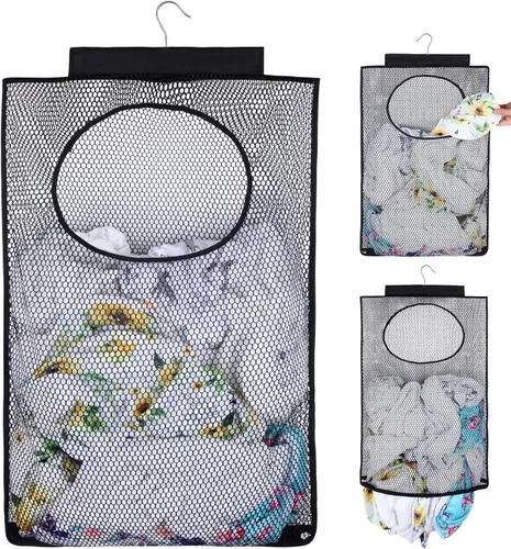 Estructura independiente: la parte superior viene con un colgador giratorio que funciona bien para colgar en la barra de cortina de ducha u otro lugar. El diseño de agujeros abiertos sobre la cesta de lavandería es conveniente para guardar la ropa. Diseño de cremallera inferior trasera para quitar rápidamente la ropa sucia. Tela de alta calidad: hecha de tela de malla duradera, transpirable y transparente, no más ropa sucia maloliente. [Capacidad extragrande]: la cesta de lavandería mide 30 x 20 pulgadas. Esta cesta de ropa puede contener ropa, almohadas, juguetes de bebé, etc. Buena opción para dormitorios universitarios o vida familiar. Duradero y resistente: el organizador de cesta de lavandería está hecho de tela más gruesa que otras marcas y no se rompe ni daña después de un uso prolongado. Portátil plegable: el contenedor plegable se pliega fácilmente para un almacenamiento compacto, ideal para el hogar, campus, camping, apartamentos, hoteles y compras.