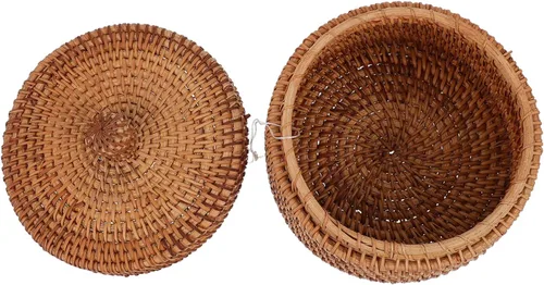 Pregunta sugerida sobre Cesta redonda pequeña de mimbre con tapa, cesta de frutas tejida, cuencos de ratán para pan, bandeja de mimbre, cestas de almacenamiento ¿Qué incluye exactamente este set?