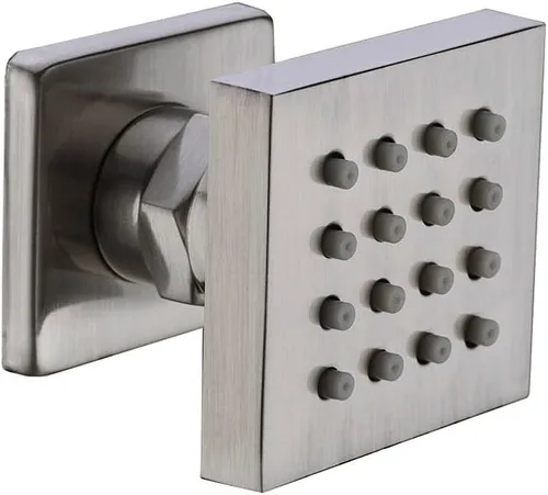 Tipo: Jet de spray de cintura de latón Característica: Ahorro de agua y alta presión Material: Latón Acabado: níquel cepillado Forma: Cuadrado Tamaño: 2"x2"/ 50x50 mm Peso neto (kg): 0,25 Número de ajustes: 1 Estándar de conexión: 1/2" Paquete: 1* Spray Jet Del fabricante Tu búsqueda de una ducha mejor y más relajante finalmente ha terminado. Cuando recibas tu paquete, saca tu nuevo cabezal de ducha de la caja y admira el elegante diseño. Tienes en tus manos un sistema transformador de ducha que convertirá tu aburrida rutina de baño en una experiencia rejuvenecedora y similar a un spa. ¿Qué hace que nuestros chorros corporales de ducha/cabezales de ducha laterales sean diferentes? Increíble aspecto impresionante. Acabado de níquel cepillado para crear un aspecto metálico gris fresco. Combinará con el diseño de tu baño junto con tu cabezal de ducha de níquel cepillado y otros accesorios. Rociador ajustable. Dirección de rotación arriba/abajo/izquierda/derecha, correspondiente a los requisitos de usted y su familia. Cabezal de masaje de pulverización horizontal. 16 salidas limpias de silicona de alta calidad. Fácil de limpiar, solo extrusión para eliminar el polvo. El tamaño de conexión de 1/2" se adapta a estándar americano. Chorros de cuerpo montados en la pared fáciles de instalar. 2 pulgadas de largo x 2 pulgadas de ancho. Puedes comprar dos jets de seis cuerpos para hacer una combinación y ajustar las partes correspondientes de acuerdo a tus requisitos, lo que puede permitirte sentir la experiencia de spa en casa. Cuando seleccionas un sistema de ducha de hidromasaje, una ducha ordinaria se convierte en una experiencia de ducha personalizada. Con la integración de chorros de ducha, nuestras duchas de hidromasaje abren nuevas posibilidades de diseño al tiempo que proporcionan una experiencia de ducha vigorizante.
