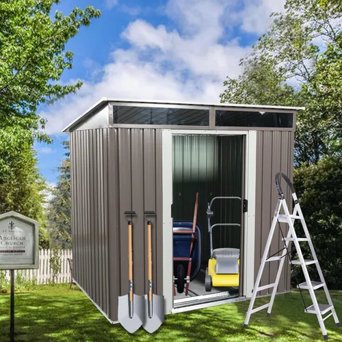 【Cobertizo de utilidades al aire libre】 Cobertizo grande de 6.4 pies x 4.5 pies y cobertizo de almacenamiento al aire libre, perfecto para patio trasero al aire libre, jardín, patio, sala de herramientas impermeable para utilidades. El cobertizo de jardín al aire libre tiene un interior de gran tamaño que puede proporcionar espacio adicional de altura y almacenamiento incrementado, ideal para guardar de forma segura cortadoras de césped, botes de basura, bicicletas, herramientas eléctricas, mangueras y otros artículos. 【La estructura de la base se incrementa】Se agrega la estructura de base metálica para brindar comodidad a los clientes que la necesitan, lo que facilitará su colocación en el jardín y ahorrará tiempo en la construcción de la base. 【Antes del ensamblaje】 Todas las piezas del cobertizo de almacenamiento exterior de metal están precortadas y preperforadas con números marcados. Se recomienda montar en un terreno nivelado. No apriete todos los tornillos durante el proceso de montaje hasta que se complete todo el proyecto. Equipado con película protectora de plástico, se puede despegar según sea necesario, no afecta el uso posterior. 【Cobertizo de jardín de metal sin mantenimiento】Hecho de acero galvanizado, fuerte resistencia a la corrosión. Las placas de acero resistentes a los rayos UV evitan el deterioro, y tres vigas de metal grueso reforzadas sostienen el techo, asegurando una resistencia más fuerte y mejor con el tiempo. Las paredes superpuestas proporcionan una mejor protección contra la infiltración de agua de lluvia. Cuando se ensambla de manera segura, proporcionará protección adicional contra las inclemencias del tiempo. 【Para todas las condiciones adversas】 A diferencia de las rejillas de ventilación típicas de plástico, asegurando la ventilación mientras se evita que las fuertes lluvias fluyan hacia el cobertizo o se filtren, permitiendo un mayor flujo de aire hacia el cobertizo de almacenamiento del patio. El acero galvanizado es impermeable, resistente a la intemperie y resistente al sol, ayudando eficazmente a mantener su propiedad en buenas condiciones.