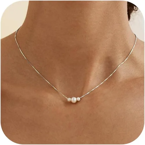 Collares de perlas doradas para mujer, a la moda. Collar delicado chapado en oro de 14 K, sencillo y en capas, ideal como joyería para bodas,