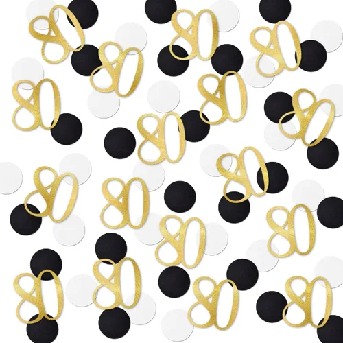 Confeti dorado con purpurina 80, confeti número 80, 200 piezas de decoración de mesa de fiesta de aniversario