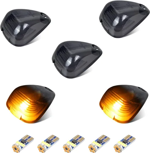 Conjunto de luces LED para techo de cabina con lente ahumada y luces de holgura en la parte superior, con bombillas LED T10 ámbar, compatibles con