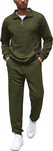 COOFANDY Conjunto deportivo de 2 piezas para hombre, ajuste relajado, con media cremallera, para correr
