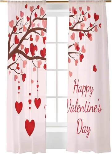 Cortinas semitransparentes para el día de San Valentín Material de alta calidad, duradero, ligero, agradable al tacto, reutilizable y no se decolora. ✓ Filtra la luz dura, crea un ambiente relajante para disfrutar de la cálida luz solar natural durante todas las estaciones. Crea un ambiente romántico, añade color para San Valentín, tu amante se sorprenderá con lo que ve Equilibra correctamente la privacidad y la luz, evita que las personas vean tu interior. Ampliamente utilizado para sala de estar, dormitorio, patio, salón, puerta corredera, balcón, etc. ✓ Gran decoración para el día de San Valentín, fiesta de boda, fiesta de compromiso, aniversario, boda, propuesta sorpresa, despedida de soltera, baby shower, fiesta de cumpleaños, etc. Añade más toque festivo a tu hogar ✓Regalo ideal para tu esposa, marido, padres o cualquier pareja que celebre su día especial. ✓Nota: para obtener un bonito efecto plisado, el ancho total del panel debe ser de 1.5 a 2 veces el ancho de la ventana. Elige nuestras cortinas románticas y pasa un feliz día de San Valentín contigo