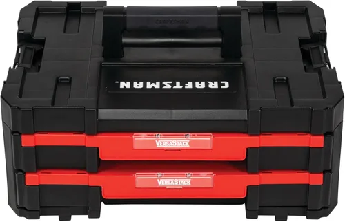 El sistema VERSASTACK™, de CRAFTSMAN®, es una plataforma flexible que permite muchas combinaciones diferentes según las necesidades del usuario. Esta unidad cuenta con dos cajones y se puede apilar con otros componentes VERSASTACK™ poniéndola encima o debajo de estos.