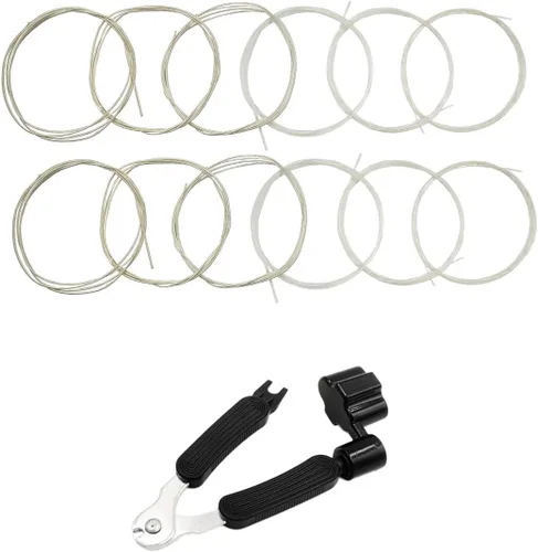 【2 juegos completos de cuerdas de guitarra clásica】Viene con 2 juegos completos de cuerdas de guitarra clásica de nailon transparente, cada juego tiene 6 cuerdas, con nailon transparente para E-1st/B-2nd/G-3rd y núcleo de nailon chapado en plata de aleación de cobre para D-4th/A-5th/E-6th. La mejor calidad: estas cuerdas de guitarra clásica están hechas de materiales de la mejor calidad, están fabricadas con el control de calidad más estricto, son duraderas para practicar, tocar y actuar. 【Sonido hermoso】Estas cuerdas tienen tensión estándar, pueden ofrecer un tono excepcional y un sonido hermoso, son la mejor opción para estudiantes de guitarra clásica, intérpretes o intérpretes o músicos. 【Fácil de instalar:】 Número etiquetado 1, 2, 3, 4, 5, 6 para diferenciar 6 cuerdas y es fácil de instalar. Kit de recuperación de guitarra 3 en 1: recibirás 1 kit de cuerda de guitarra como regalo, cortador de cuerdas de guitarra y enrollador de cuerdas de guitarra y extractor de pines de guitarra están integrados en una herramienta, con diseño ergonómico y de alta calidad, hace que los reemplazos de cuerdas sean más rápidos y fáciles, se puede utilizar para guitarra, bajo, violín, ukelele, banjo, mandolina, etc.