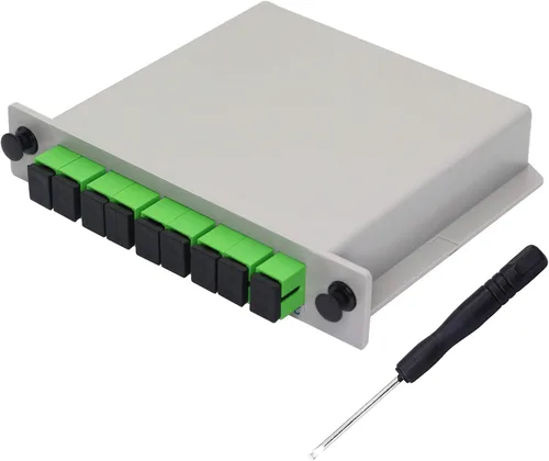 1x8 tipo divisor PLC de inserción. El tipo de interfaz es SC/APC, rápido y práctico. Aplicable al cableado doméstico, proyectos de ingeniería, empresas corporativas, LAN de fibra óptica. Tiene una estructura compacta y buena estabilidad, y se puede instalar en varias cajas de transferencia existentes sin dejar mucho espacio de instalación. Estructura de fibra completa, estable y rápido, chip de alta calidad incorporado, garantiza una división de luz uniforme y estable, respuesta rápida sin demora. Que puede satisfacer las necesidades de diferentes longitudes de onda Carcasa de plástico ABS, con resistencia al impacto del pozo, resistencia al calor y resistencia a bajas temperaturas. Baja pérdida de inserción y reflexión de espalda baja, alta confiabilidad y estabilidad, PDL bajo.
