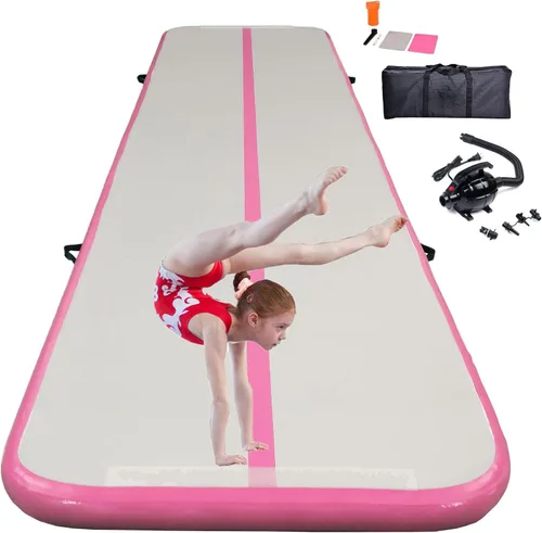 • es firme y duradera. 2.【Amplios usos】: esta colchoneta inflable de gimnasia se puede utilizar en casa, gimnasio, club de fitness, clubes de baile, escuelas, centros de ocio y parque. La colchoneta tipo pista se puede utilizar en la playa, en la piscina, en el patio trasero o sobre el césped. Solo asegúrate de que no haya fuego alrededor ni cosas afiladas debajo de la colchoneta. Puedes hacer gimnasia, yoga y entrenar Taekwondo en la colchoneta. 3.【Se infla y desinfla fácilmente】: esta colchoneta inflable de gimnasia solo tarda mucho menos tiempo en inflarse y puede mantener la presión durante días en comparación con las colchonetas tradicionales a base de espuma y otras colchonetas de acrobacias. Con la bomba de aire, solo necesitas minutos para inflar y desinflar la colchoneta inflable. Además, es fácil de plegar y de desplegar. 4.【Cómodas y seguras】: esta es una colchoneta de gimnasia muy cómoda cuando haces gimnasia o practicas acrobacias en casa, ya que es de alta resistencia y puede protegerte de daños al hacer ejercicio.Al ser 100 % impermeable, puedes hacer yoga sobre esta colchoneta inflable en tu piscina.
