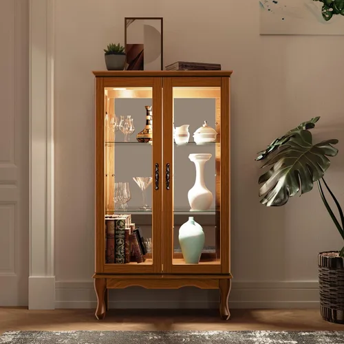 Mdf, vidrio templado Solución de almacenamiento inteligente: midiendo 43.5 "H x 11.75" D x 26" W, este gabinete curioso iluminado puede tener un tamaño compacto, pero ofrece una amplia capacidad de almacenamiento. Con tres estantes, incluyendo un estante de madera fijo en su lugar y dos estantes de vidrio templado ajustables, cada uno capaz de soportar hasta 15 libras, puedes organizar y mostrar tus artículos con flexibilidad y estilo. Ilumina tus tesoros: exhibe tus coleccionables de día o de noche con el sistema de iluminación interno, con una base de lámpara E26 estándar (bombilla no incluida). El cable de 116 pulgadas de largo con un enchufe de alimentación de CA de 2 clavijas garantiza una colocación cómoda y un fácil acceso a la alimentación. Visualización óptima: El panel trasero de espejo de longitud completa mejora la visualización de las reliquias de su familia, ofreciendo una vista encantadora desde cualquier ángulo de la habitación. Asegúrese de que sus preciados coleccionables siempre se exhiban de la mejor manera posible. A prueba de polvo y fácil de limpiar: el hardware magnético en las puertas del gabinete Curio garantiza un cierre seguro, manteniendo tus tesoros protegidos del polvo. La limpieza es muy sencilla: simplemente limpia el polvo con un paño suave. Evita el uso de productos químicos en el acabado de madera para una belleza duradera. Fácil montaje: al recibir el producto, encontrará un paquete que contiene todas las herramientas de montaje y hardware necesarios. Un manual de instrucciones lógico incluido con el producto, garantiza un proceso de instalación sin problemas. Para una estabilidad óptima, recomendamos un montaje para dos personas. Con un diseño fácil de usar, tendrás tus preciados coleccionables bellamente exhibidos en poco tiempo.