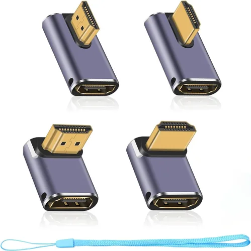 【Adaptador HDMI de 90 grados】Nota: Vendemos juegos de adaptadores HDMI de 90 grados 8K que incluyen 4 ángulos: ángulo superior, ángulo inferior, ángulo izquierdo y ángulo recto. Estos adaptadores HDMI de ángulo recto están equipados con luces indicadoras LED, diseños perforados y cuerdas para colgar. Un conjunto resuelve tu problema de elegir ángulos. Adaptador HDMI de ángulo recto: su diseño de ángulo recto de 90 grados evita eficazmente que los cables HDMI se doblen, reduce la presión en los puertos HDMI y permite cambios más flexibles en la dirección de la interfaz. Este adaptador HDMI en ángulo también evita el desgaste en los cables HDMI y los puertos de entrada del dispositivo, extendiendo su vida útil Adaptador de ángulo recto HDMI 8K: admite un ancho de banda ultra alto de hasta 48 Gbps, capaz de transmitir simultáneamente video y audio de alta definición a alta velocidad, y es compatible con versiones anteriores.Nota: Para lograr un rendimiento de 8K, su cable, dispositivo o puerto HDMI debe admitir la funcionalidad HDMI 2.1. Amplia compatibilidad: el adaptador HDMI en ángulo recto es compatible con dispositivos con puertos HDMI, como PC, computadoras portátiles, monitores, televisores de alta definición, Fire TV Stick, cajas de TV, Switch, PS3, PS4, PS5, Xbox One, Xbox Series, etc. El adaptador HDMI de 90 grados puede soportar hasta una resolución de video de 8K y una salida de video de 8K a 60Hz, y también es compatible con versiones anteriores. Con puertos chapados en oro de 24 quilates, el adaptador ofrece una conexión plug-and-play más rápida y sensible. Su diseño compacto y ligero lo convierte en una opción ideal para el hogar, viajes y oficina.