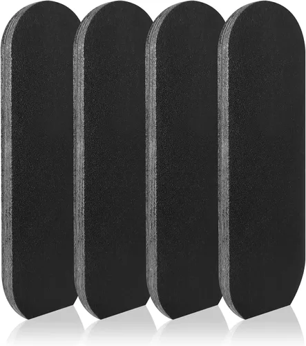 Total de 40 almohadillas – 4 paquetes (10 almohadillas cada uno: 5 gruesas + 5 finas) Grano: 20 piezas de grano 180# lado fino, 20 piezas 120# lado grueso Tamaño de la almohadilla: 5.2 x 1.7 pulgadas, adecuado para lima de pie de metal grande (longitud 9.65 pulgadas, ancho 1.77 pulgadas) Impermeable, duradero, fácil de quitar con pegamento extraíble Lima de pie profesional para piel muerta, para alisar los talones secos, callos y agrietados