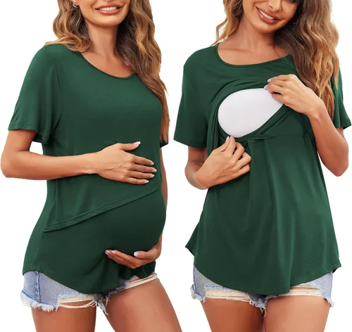 Ekouaer Camisetas de lactancia de manga corta para mujer, de doble capa, tallas S-XXL