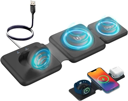 ¿Para qué sirve Cargador inalámbrico Nano 3 en 1, estación de carga inalámbrica Apple y Samsung, cargador de viaje plegable para múltiples dispositivos iPhone?