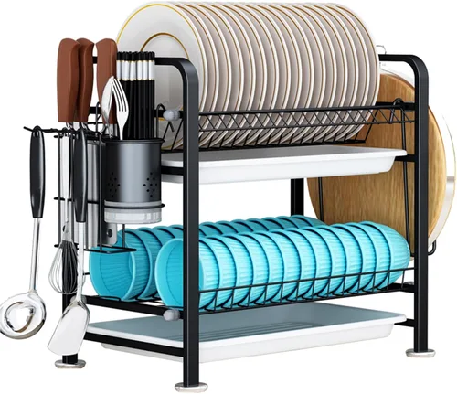 ¿Para qué sirve Escurridor de platos de 2 niveles, escurridor de platos con soporte para utensilios, escurridor de acero inoxidable 304 con estante para tabla?