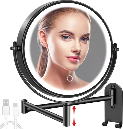🔋【3000 mAh Batería recargable incorporada de uso inalámbrico】El espejo de maquillaje iluminado CONLWIN está equipado con una batería recargable de 3000 mAh, que proporciona 10-15 horas de uso inalámbrico a diferentes niveles de brillo. Su puerto de carga tipo C ofrece alta eficiencia (incluye cable USB), el puerto de carga permanece estable incluso después de 18,000 cargas repetidas. Este espejo montado en la pared tiene una función de apagado automático después de 30 minutos para ahorrar energía si olvidas apagarlo. 💡【80 perlas LED y luces de memoria de 3 colores】El espejo de maquillaje LED de pared de 8 pulgadas CONLWIN cuenta con 80 perlas LED de grado de maquillaje, ofrece opciones de iluminación de 3 colores (fría, natural, cálida) para satisfacer tus necesidades en diversos entornos. Una pulsación breve en el interruptor del sensor cambia el color de la luz, y una pulsación prolongada ajusta el brillo de 0 a 1200 Lux, un 50% más brillante que otros, perfecto para usar en áreas con poca luz. También cuenta con una función de memoria que guarda tu configuración de brillo anterior. 🔎【1X/10X de alta resolución de doble cara】El espejo de tocador mejorado ofrece superficies de espejo de alta definición con efecto de más de 12 millones de píxeles para los lados de 1X y 10X. El espejo 1X te permite ver todo tu maquillaje y peinado, mientras que el espejo de aumento 10X revela cada poro, defecto y cabello con claridad óptica (mantén tu cara a 4 pulgadas del espejo para evitar mareos cuando utilices el espejo de aumento 10X). ✨【Brazo de extensión ajustable en altura】① La altura del espejo de tocador de baño es ajustable de 15.5 a 17 pulgadas para satisfacer diferentes requisitos de altura; ② La rotación libre de 360° te permite encontrar sin esfuerzo el ángulo deseado; ③ El espejo montado en la pared con brazo extensible de 13 pulgadas se puede ajustar a cualquier posición que necesites para lograr una visión perfecta. El espejo cosmético ha pasado más de 20.000 veces la prueba de fatiga, lo que demuestra la durabilidad y estabilidad del eje giratorio. ❤【Diseño de gancho y fácil instalación】①El marco y la base del espejo de maquillaje están fabricados con metal de alta calidad y cuentan con un proceso de galvanización y pulido de múltiples capas, proporcionando durabilidad, resistencia a la humedad y resistencia a la corrosión. ② Los ganchos en la base se pueden utilizar para sostener baterías portátiles, teléfonos, o colgar toallas, etc. ③El espejo de baño se puede instalar fácilmente en 3 minutos sin la necesidad de personal profesional. El espejo de maquillaje CONLWIN es un regalo perfecto para amigos, familiares o pareja. 🎁【Amplio uso y opción de regalo ideal】Este espejo de maquillaje montado en la pared se puede utilizar en una variedad de entornos como dormitorios, baños, hoteles, spas y belleza, también es el regalo perfecto para tu familia, amigas o hermanas en cumpleaños, Navidad, Halloween, Acción de Gracias, Día de la Madre y Día de San Valentín. Si tienes alguna pregunta sobre el espejo cosmético montado en la pared, no dudes en ponerte en contacto con nosotros directamente, lo resolveremos satisfactoriamente.