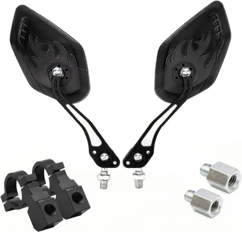 AMPLIA VISIÓN: Espejos de bicicleta para manillar para una visión amplia y estabilización de la imagen; Espejo de bicicleta de buena calidad, duradero con materiales resistentes a la intemperie Resistente y duradero: el espejo de bicicleta viene con marco óptico ABS y aleación de aluminio que proporcionan una protección absoluta al espejo contra roturas debido a algunos golpes leves AJUSTE ANGULAR COMPLETO: Nuestros espejos de bicicleta para manillar están diseñados para girar 360° para una cobertura máxima Amplia aplicación: el espejo de bicicleta es adecuado para manillar dentro de 0.866-0.984 in, se adapta a la mayoría de motocicletas, bicicletas de calle Fácil de instalar: con instrucciones sencillas (idioma español no garantizado) y todos los accesorios necesarios incluidos; estos espejos de bicicleta se pueden instalar en minutos para un uso inmediato