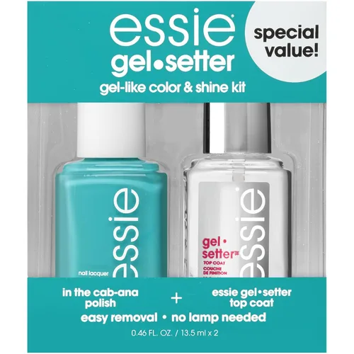 essie Kit de Esmalte de Uñas Gel Setter, Esmalte de Uñas Azul Aqua + Capa Superior, In-The-Cabana, 0.46 oz cada uno