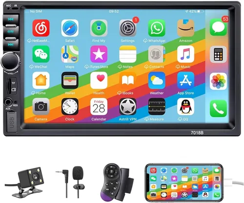 Llamadas manos libres Bluetooth y radio FM: este estéreo de automóvil de doble DIN cuenta con llamadas manos libres Bluetooth. También es compatible con radio FM. Esta radio de coche de doble DIN también ofrece un modo estéreo donde la pantalla del automóvil se conecta sin problemas al sistema de sonido de fábrica de su automóvil a través de la transmisión Bluetooth o entrada auxiliar, y todo el audio se reproduce a través de los altavoces de fábrica de su automóvil. 【Enlace de espejo y cámara de marcha atrás】: al conectar la radio de tu automóvil con tu teléfono celular, puedes reflejar el video mientras conduces, lo que te permite disfrutar del ocio en la carretera. Además, este producto también cuenta con una cámara trasera de reversa HD, el receptor de estéreo de coche soporta la función de vista trasera, que mostrará automáticamente la imagen cuando el vehículo esté retrocediendo. Viene con cámara de visión trasera HD con visión nocturna, amplio ángulo de visión y diseño totalmente impermeable, asegurando una conducción y estacionamiento más seguros y fáciles. 【AUX/TF/USB/EQ】: Este sistema para el automóvil admite una conexión auxiliar con cable, lo que resuelve el problema de no poder conectarse en algunos modelos. También admite la inserción de tarjeta TF para que puedas reproducir música a través de la tarjeta TF. Y admite la función de carga rápida USB para ayudarte a cargar tu teléfono celular rápidamente. Este producto cuenta con configuraciones de EQ para satisfacer tus necesidades de diferentes calidades de sonido, para que puedas disfrutar de una calidad de sonido superior en cualquier lugar. 【Instrucciones de fuente de alimentación】Nuestro sistema de audio para coche es compatible únicamente con fuente de alimentación de coche de 12 V CC. Asegúrate de comprobar las especificaciones de la fuente de alimentación de tu automóvil. Una fuente de alimentación adecuada es esencial para mantener su sistema de audio en óptimas condiciones. ⚠️⚠️⚠️【Consejos para usuarios de iPhone 16 y 17】 ¡Usuarios de iPhone 16 y 17! Si encuentras algún pequeño problema mientras usas tu dispositivo, no hay necesidad de estresarse. Solo envía un mensaje a nuestro equipo directamente desde la página de pedidos; nos pondremos manos a la obra con tu guía de actualización y toda la ayuda post-venta, asegurándonos de que tu experiencia siga siendo perfecta. ¡Muchas gracias por tu comprensión y apoyo!