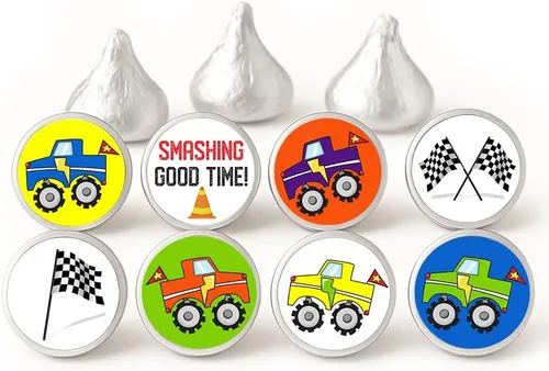 Etiquetas de camión monstruo para Hershey Kisses Chocolates - Calcomanías de caramelo para fiesta de cumpleaños - Juego de 240