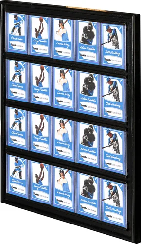 Muestra tu colección de tarjetas con el marco de exhibición de Franklin Sports Baseball + Trading Card. Este marco te permite mostrar 20 de tus tarjetas favoritas de deportes, comercio o coleccionistas para que todos las vean. El sistema de seguimiento integrado hace que sea fácil deslizar tus tarjetas dentro o fuera del marco para que puedas seguir construyendo y organizando tu colección. Con el coleccionista en mente, este marco de exhibición se adapta a la mayoría de las tarjetas de béisbol de 4 x 3 pulgadas de tamaño tradicional, deportes, comercio y otras tarjetas en los cargadores superiores para que puedas exhibir y proteger tus tarjetas de arañazos. Además, este marco de fácil montaje tiene dos ganchos ubicados en la parte posterior del marco para un fácil montaje en pared en cualquier pared dentro de tu hogar. Esta vitrina es una manera muy fácil de organizar y los 20 cargadores superiores incluidos protegen todas tus tarjetas favoritas. Así que lleva tu colección de tarjetas al siguiente nivel con el marco de exhibición de béisbol + tarjetas coleccionables de Franklin Sports